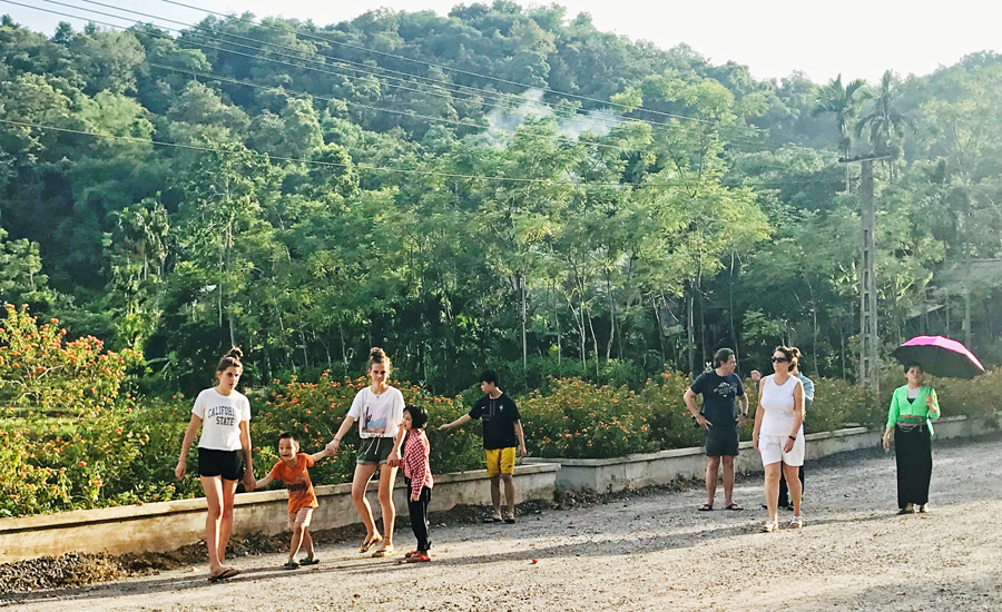 International visitors walk with local children. Photo: TITC