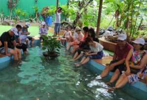 Du khách trải nghiệm cá massage chân tại Điểm du lịch cộng đồng Việt Hải