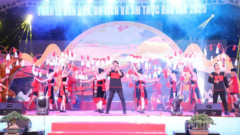 Chương trình nghệ thuật chào mừng Tuần lễ văn hóa, du lịch và ẩm thực Đắk Lắk 2025 (Ảnh: vhttdl.daklak.gov.vn)