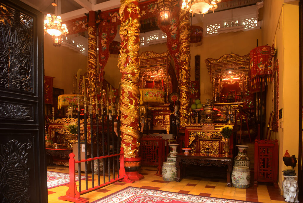 Không gian chánh điện bên trong Lăng Ông Bà Chiểu, nổi bật với sắc đỏ – vàng đặc trưng