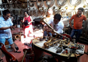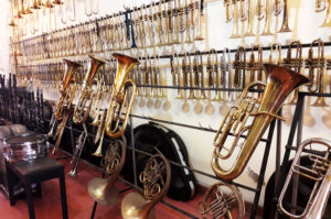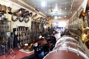 Mỗi cửa hàng sửa chữa, trao đổi, mua bán kèn là một “vương quốc” của kèn hơi. Ảnh: TITC