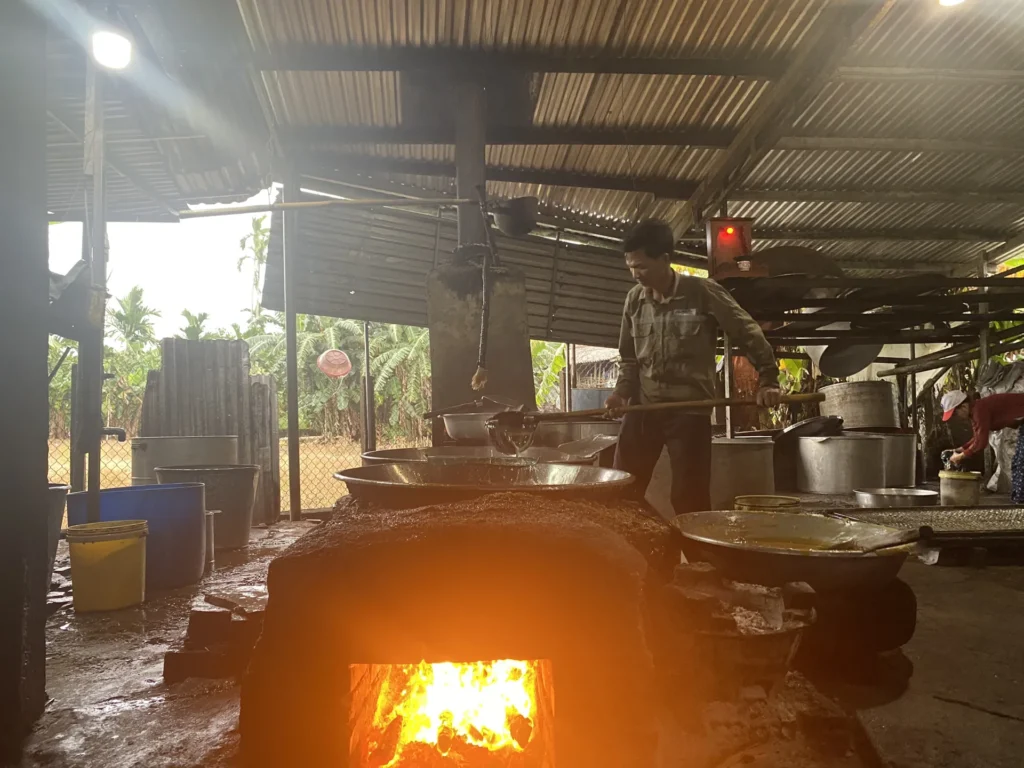 Bên cạnh đó, du khách còn có thể dạo quanh những cánh đồng mía xanh ngút ngàn, nghe người nông dân kể chuyện về nghề, thưởng thức ly nước mía tươi mát lạnh ngay giữa trưa nắng – một cảm giác bình dị mà khó quên. Nhiều du khách khi rời làng nghề vẫn không quên mang về vài ký đường phèn hoặc đường phổi như mang theo một chút hương vị quê nhà.