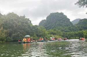 Du khách tham quan Di sản Văn hóa Thiên nhiên thế giới Quần thể danh thắng Tràng An. Ảnh: TITC