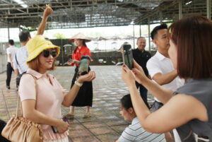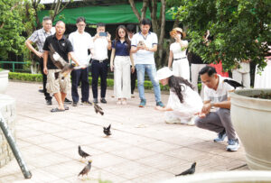 Các doanh nghiệp trải nghiệm tại khu vực chăm sóc huấn luyện chim của Trung tâm Thương mại và du lịch Dũng Tân. Ảnh: TITC