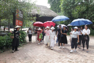 Du khách trải nghiệm tại Khu bảo tồn làng nhà sàn du lịch sinh thái Thái Hải. Ảnh: TITC