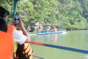 Khách du lịch trải nghiệm hồ Ba Bể. Ảnh: TITC